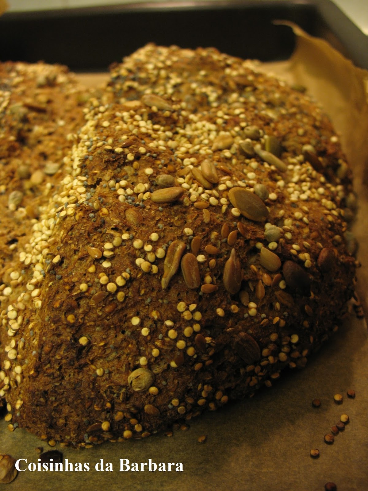 Os grãos são previamente escaldados em água fervente e as sementes que vão dentro da massa do pão são tostadas antes, para dar um sabor mais especial ;-)